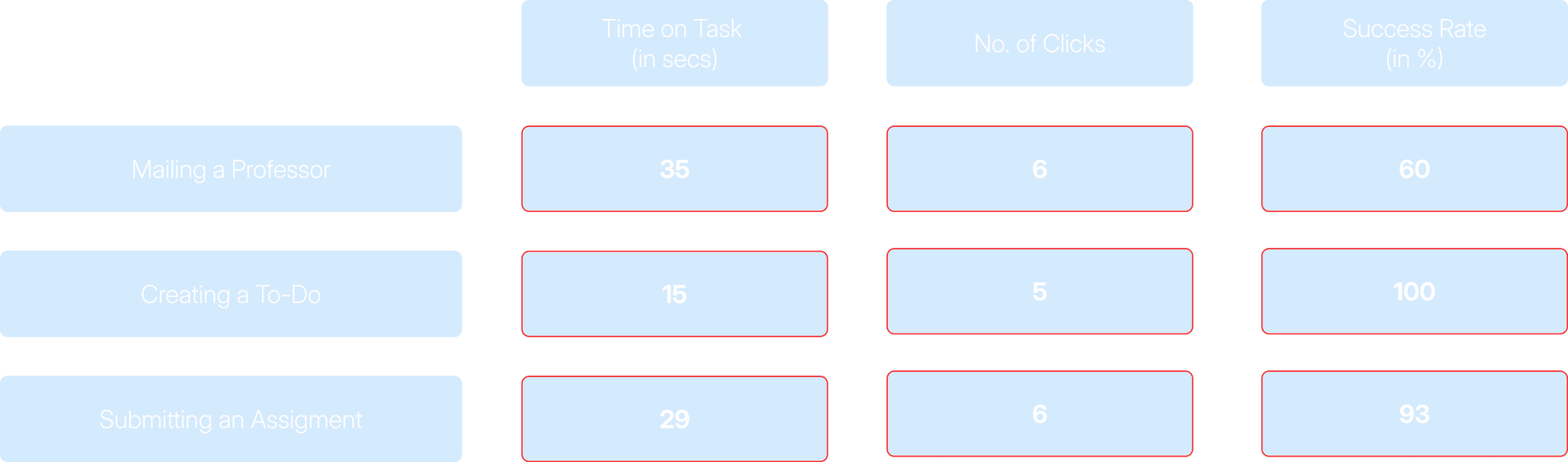Learned to analyze usability metrics and track improvements across testing rounds.